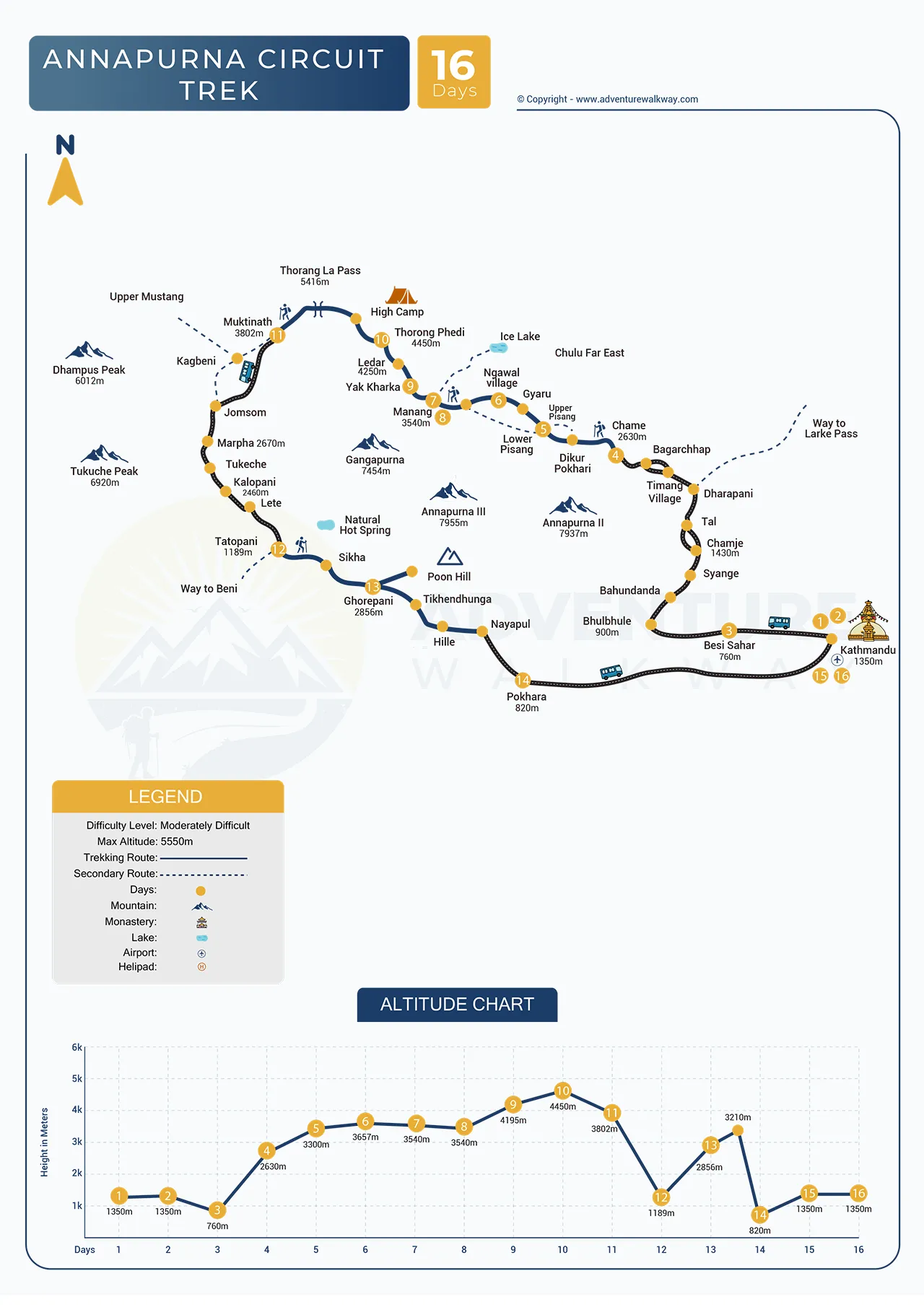 US$ 1017Route Map of Annapurna Circuit Trek – 16 Days