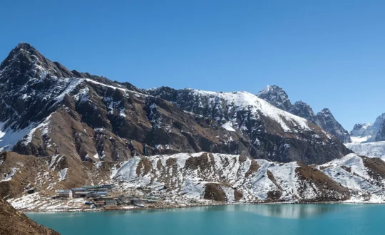 On the way, you’ll pass through local villages like Dole and Machhermo and then reach the emerald waters of the Gokyo Lakes, which bring you to the venue where Nepal’s largest glacier flows. The main attraction is the early morning ascent of Gokyo Ri (5,357 m), from where you can spot the entire Everest, Cho Oyu, Lhotse, and Makalu massif.