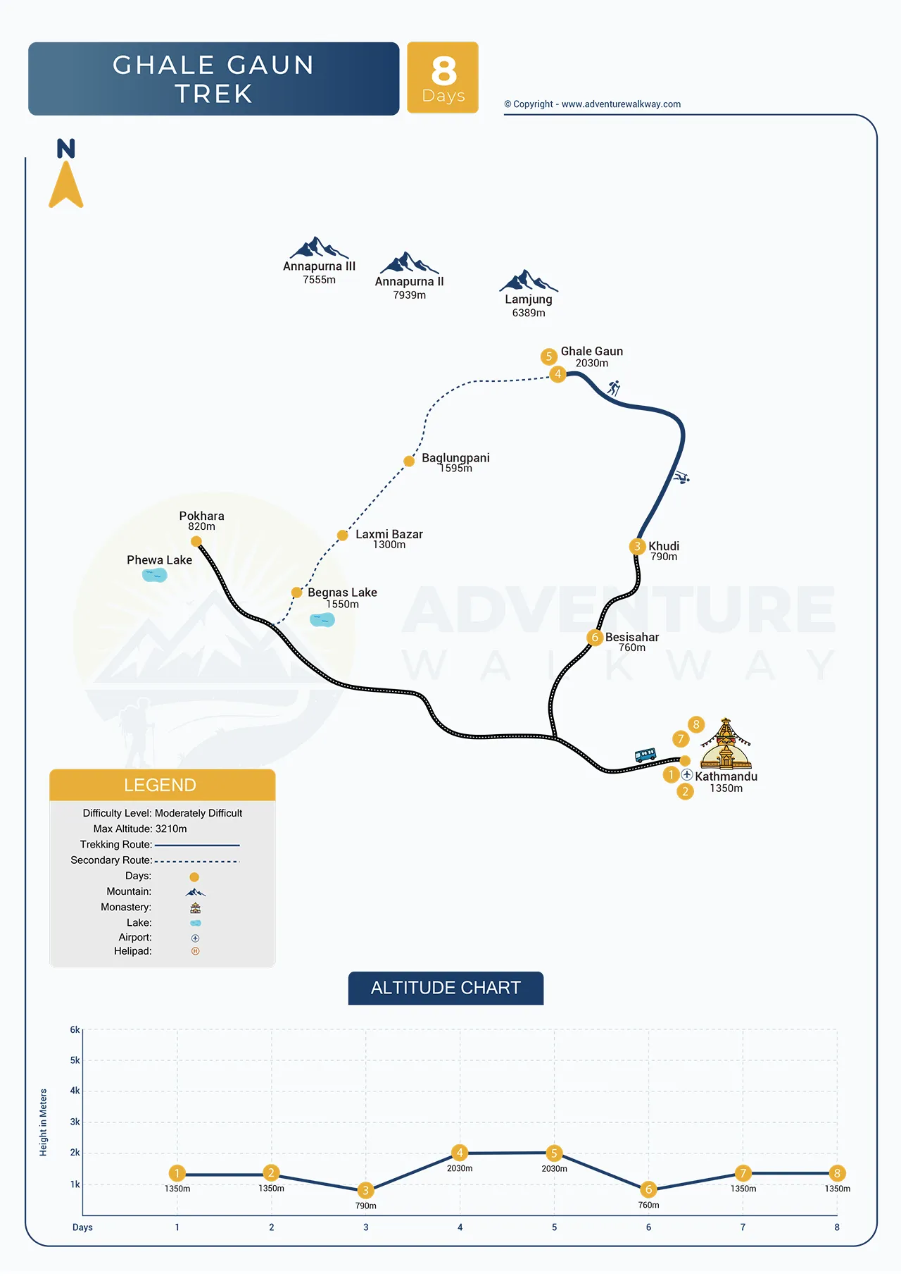 Route Map of Ghale Gaun Trek – 8 Days
