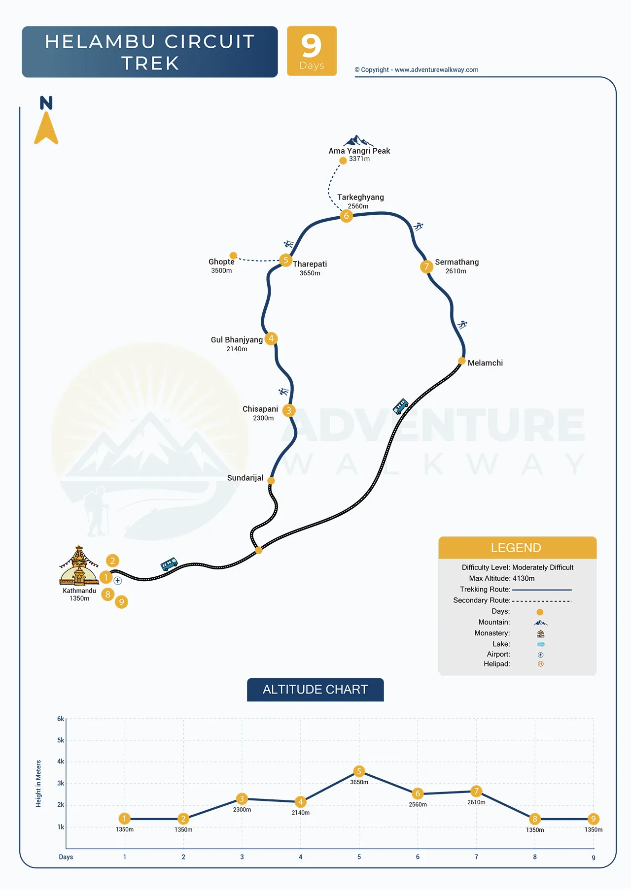 The Helambu Circuit route goes through the Shivapuri National Park. Hence, trekkers are required to take the Shivapuri National Park Permit. It can be obtained at the Shivapuri National Park entry point. It can also be obtained in Kathmandu. Adventure Walkway’s 9-day Helambu Circuit Trek package includes the Shivapuri National Park Permit.