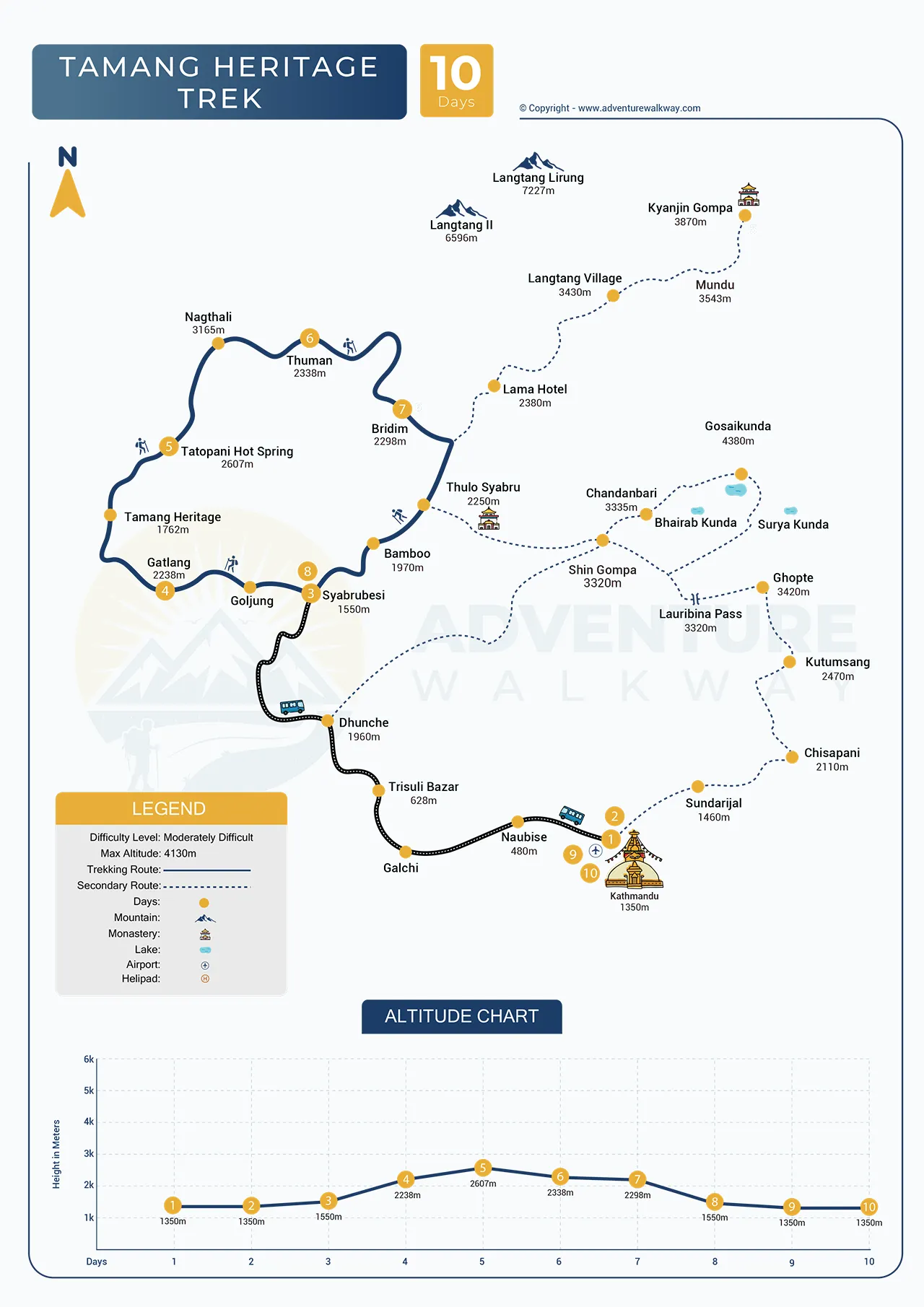Leave Nepal with fond memories and a new extended journey with the Tamang Heritage Trek, as you carry with you cultural experiences, scenic beauty, and new Himalayan adventures.